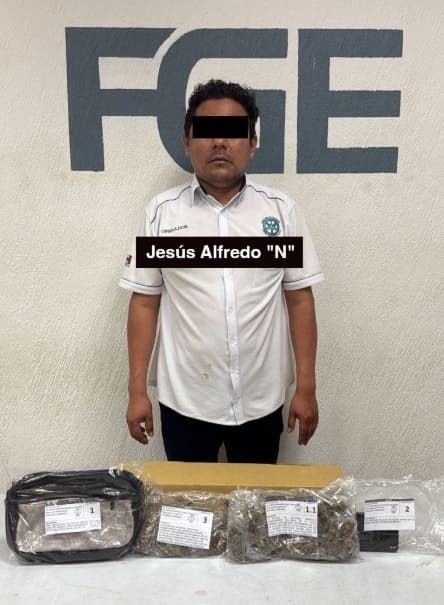 Jesús Alfredo “N” was arrested in the Ejidal neighborhood while handling a green, dried plant material resembling marijuana next to a taxi where more doses were found. A cell phone and the taxi were also seized.
