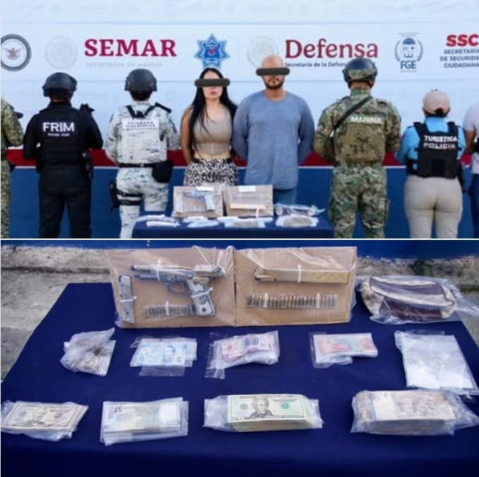 “The Quintana Roo State Attorney General’s Office reports that, as a result of an operation carried out in coordination with members of the Interinstitutional Group, they arrested two people and seized various pieces of evidence allegedly related to acts constituting the crime of drug dealing,” authorities reported Monday.