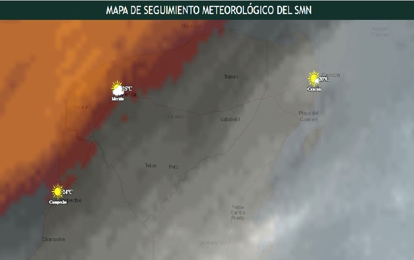 According to Mexico’s National Meteorological Service (SMN), today, cold front no. 12 will extend, with stationary characteristics, over the Bay of Campeche and the Yucatán Peninsula.