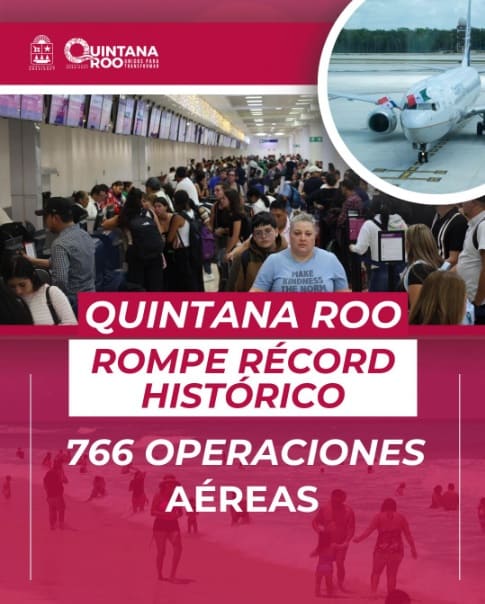 “Today Quintana Roo is breaking a historic record in air connectivity. More than 766 operations in a single day across the state’s four airports, Cancun, Tulum, Cozumel, and Chetumal, an unprecedented figure,” she said.