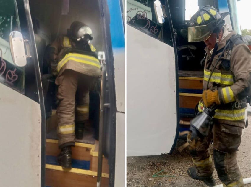 “Our personnel from the Cancun Fire Department responded to a report of an incipient fire inside a passenger bus on Blvd. Colosio, which was quickly brought under control. No injuries were reported.