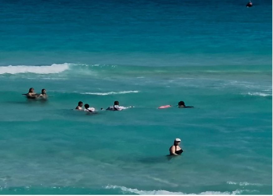 “Cancun Civil Protection lifeguards carried out a multiple rescue at Marlin Beach, near kilometer 13, after two people were swept away by the current while on a sandbar.
