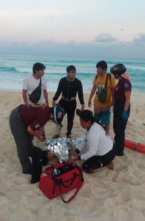 In a statement, Protección Civil Cancún reported “A rescue at Playa Delfines. On Sunday afternoon, our Civil Protection lifeguards carried out an emergency rescue at kilometer 18, at Playa Delfines.