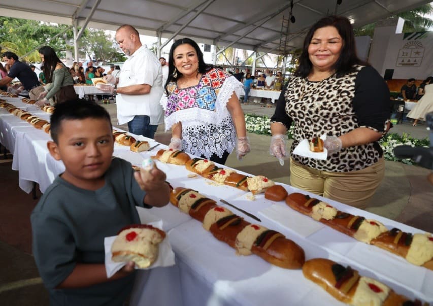 Riviera Maya, Q.R. — Cities around the state celebrated Three Kings Day with the distribution of sweet bread and free toys. In Cancun, Mayor Ana Paty Peralta shared with hundreds of residents and visitors the longest Rosca de Reyes (bread) the city has had yet.