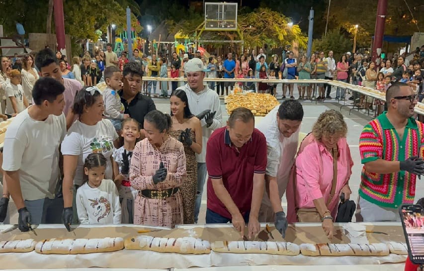 When put together, the specially decorated sweet bread measured 750 meters long. It was cut up and served to the public in celebration of Día de Reyes Magos (Three Kings Day) at the Malecón Tajamar.