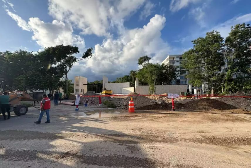 The official reported that in response to the complaint, they proceeded to place closure seals on the construction site located on Prolongación 115 Avenida Sur between Calle 57 and Calle 53 in the Ejidal neighborhood.