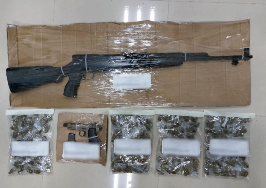 “Upon arriving at the scene, officers observed four individuals exchanging small plastic bags containing a green, leafy substance resembling marijuana. During the exchange, one of the individuals was seen carrying a black rifle.