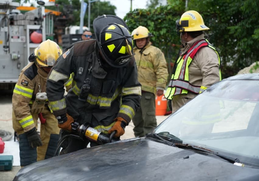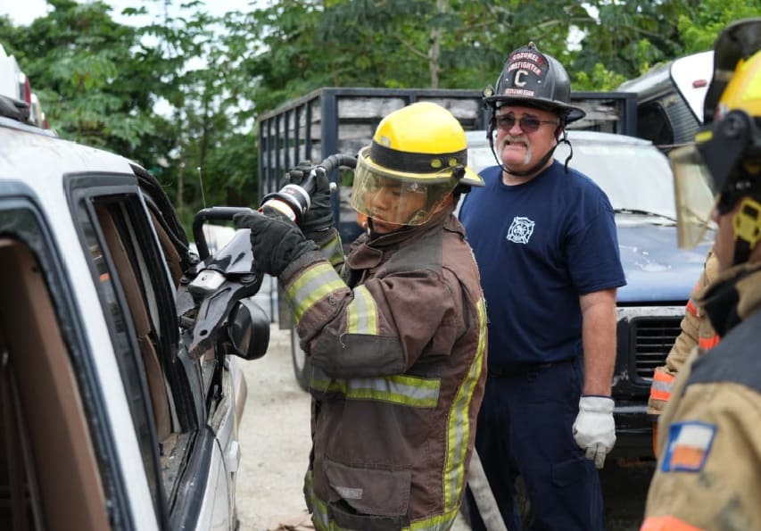 The training took place at the Baaxa Reciclajes WT Cuzamil facilities where 30 Cozumel firefighters participated in a comprehensive exercise. The exercise included real-life rescue protocols for vehicle accidents involving trapped occupants.