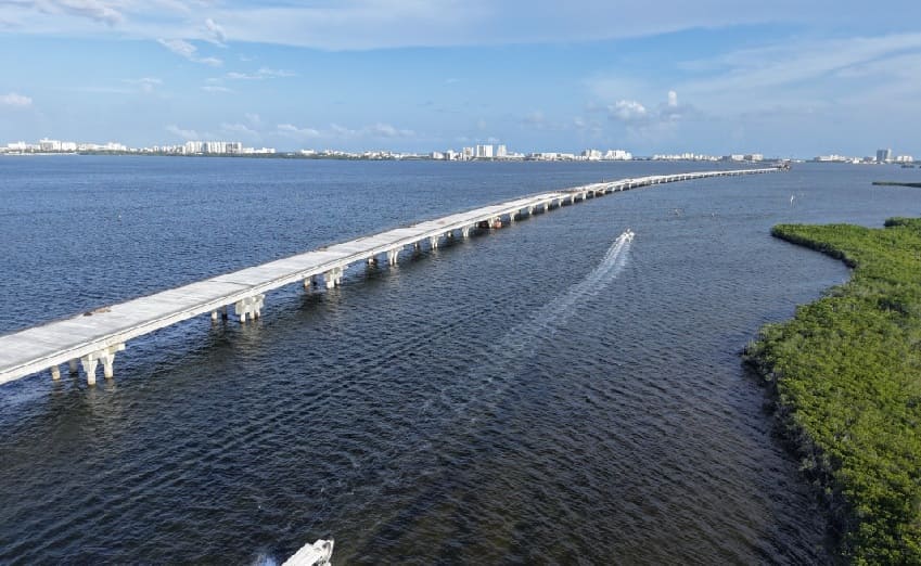 According to the Ministry of Infrastructure, Communications and Transportation (SICT), four additional piles are needed to reinforce the structure of the bridge over the Nichupté Lagoon.