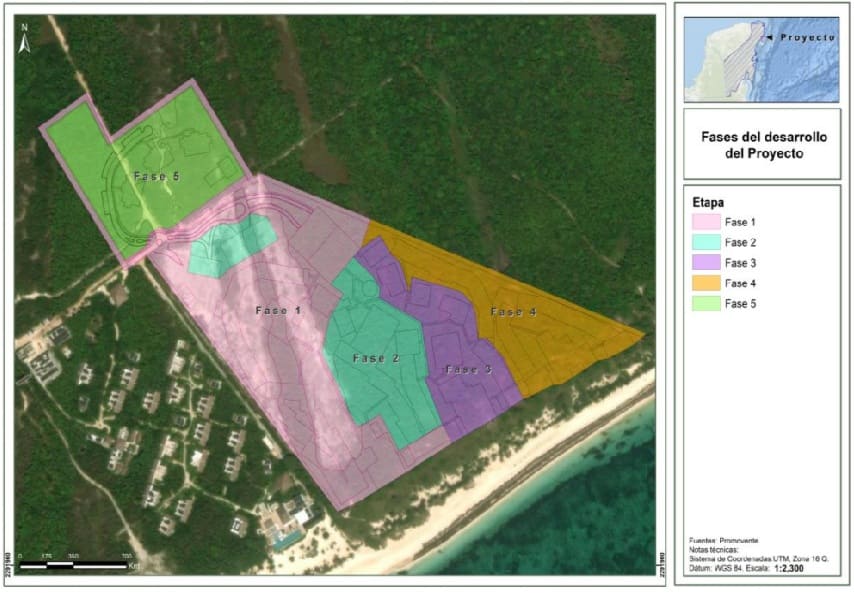 In the submitted document, “the project, named “Hotel Terraesmeralda Punta Maroma” (the Project), is located in the Punta Maroma complex, in the Municipality of Solidaridad, Quintana Roo, 2.3 km from the Cancún–Tulum highway, allowing for relatively direct access without significantly impacting the immediate natural environment.”