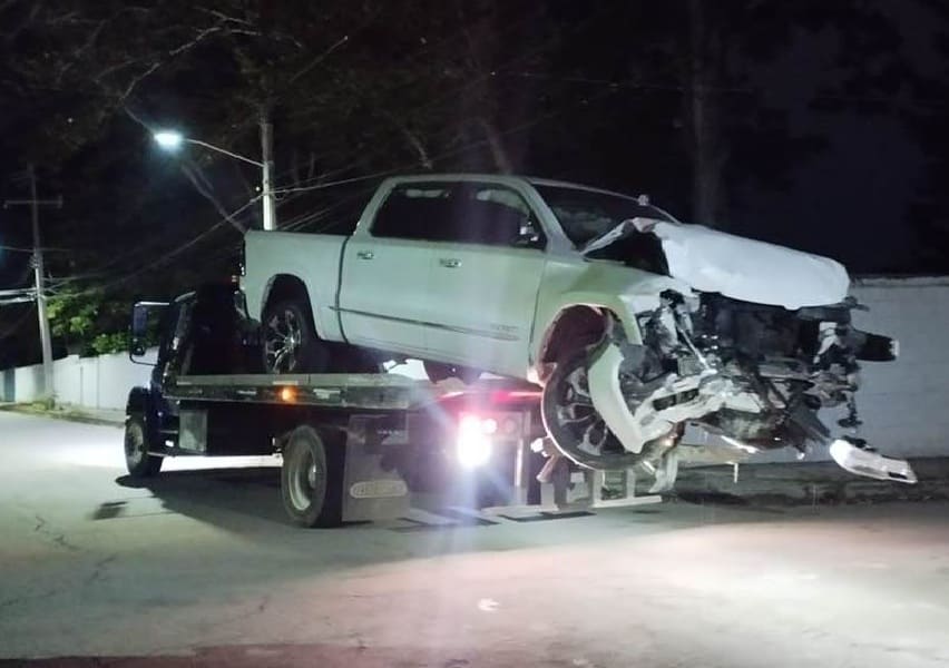 Chetumal, Q. R. — A vacationing Chetumal family started the New Year with a pickup crashing into their property. Municipal Police were at a home in the Jardines neighborhood early Sunday morning after a report of the accident.