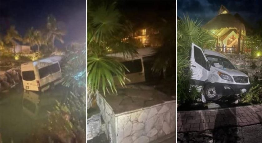 The incident happened Monday night inside the Hotel Catalonia Riviera Maya when the driver accidently backed into the hotel’s large water feature.