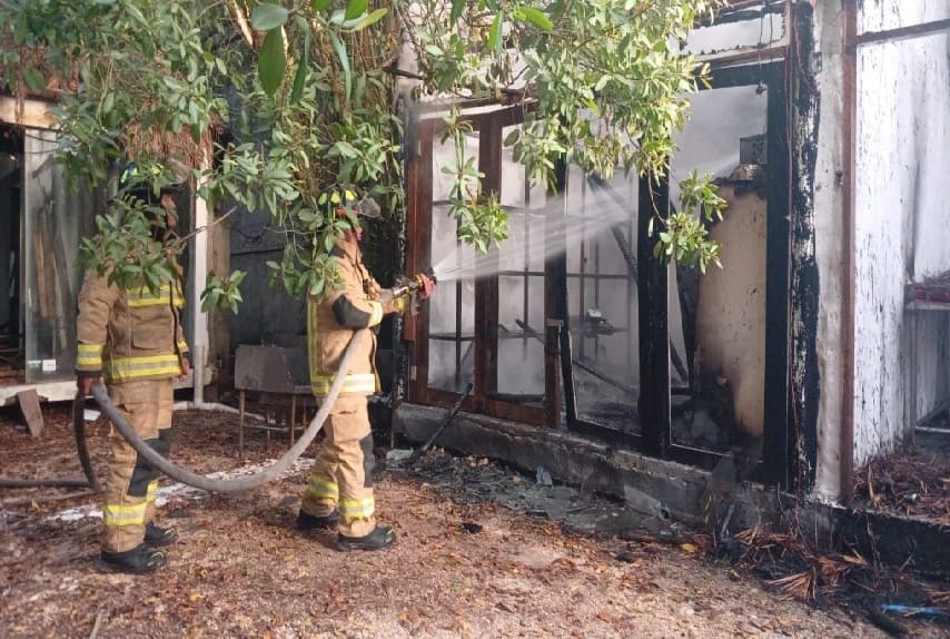 Tulum, Q.R. — At least two structures belonging to a Tulum restaurant were destroyed by an early morning fire. Firefighters and Civil Protection personnel were at the scene of a fire at Rosa Negra Tulum early Wednesday.