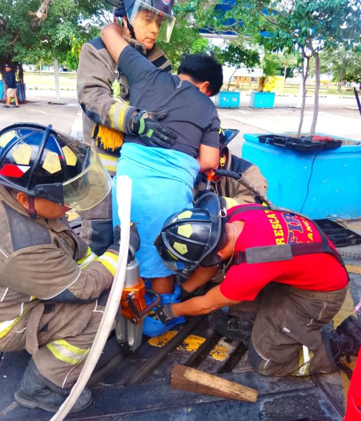 Bomberos Cancun said that after being freed, the man was transferred for medical attention due to swelling.