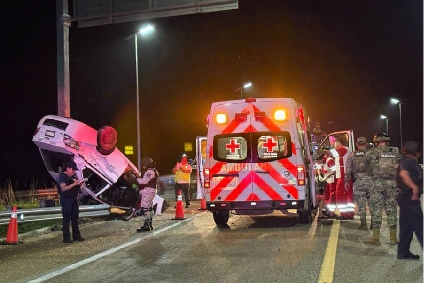 The single vehicle rollover happened shortly before 10:00 p.m. Red Cross paramedics stabilized the driver on the highway before taking him to the Felipe Carrillo Puerto General Hospital.