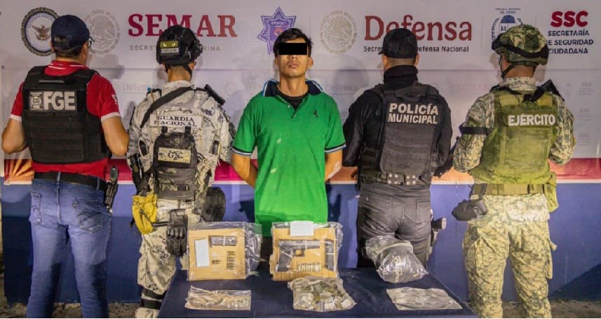 Agents reported capturing Abraham “N” while he was driving a motorcycle on Arco Norte Avenue, between Palma Canario and Palma Paraíso, in Supermanzana 260.