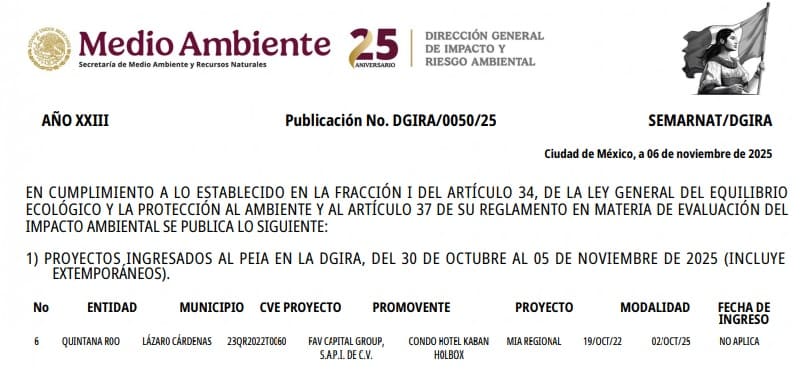 The Ministry of Environment and Natural Resources did not note if Kaban Holbox would be submitting an updated environmental impact statement to move forward with construction.