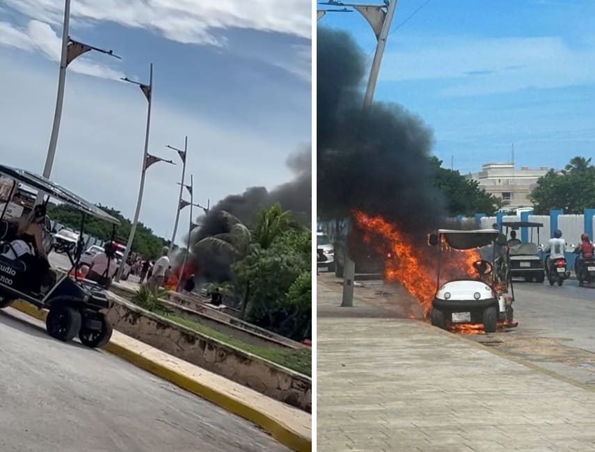 Isla Mujeres Civil Protection have since reported the fire was due to an electrical short circuit. In an official statement they said “members of the Isla Mujeres Civil Protection Coordination and Fire Department responded to a golf cart fire that broke out Tuesday afternoon on the Rueda Medina extension.