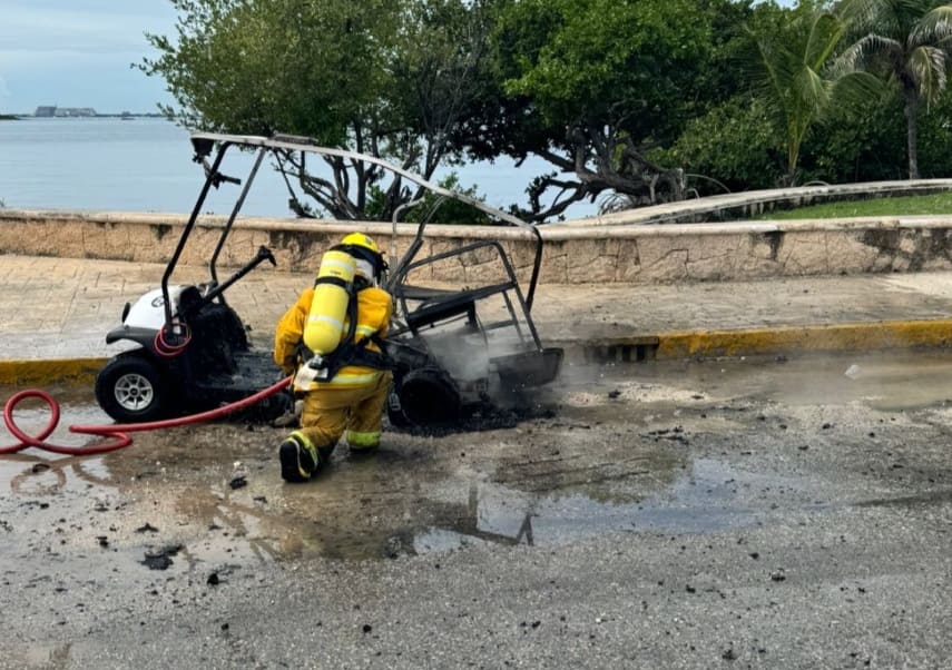 Isla Mujeres, Q.R. — Isla Mujeres firemen were called to the scene of a golf cart fire that left the unit destroyed. The incident happened on the island around noon on the Rueda Medina extension Tuesday.