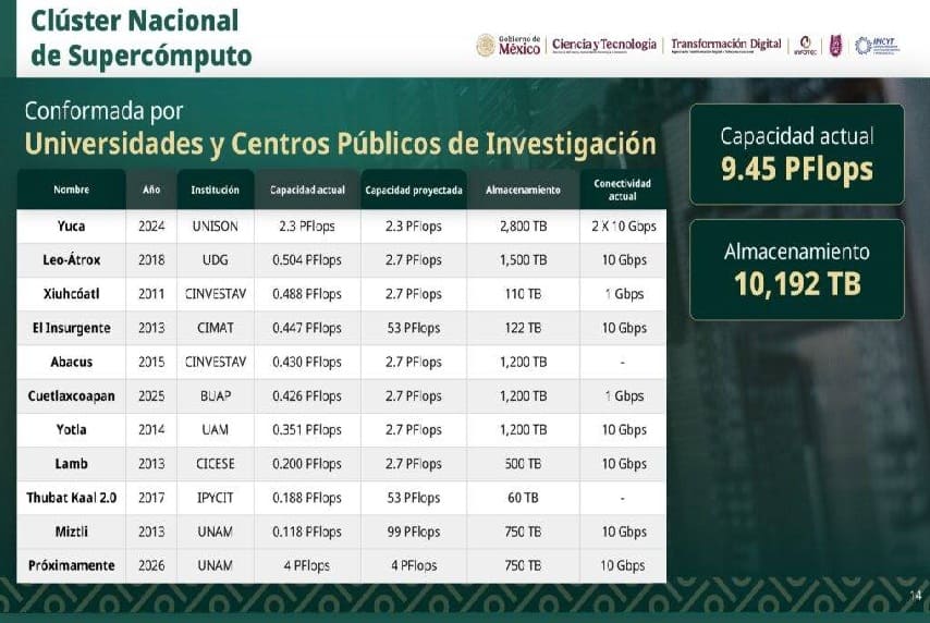 It will be linked to the National Supercomputing Cluster made up of universities and public research centers. Those include the National Polytechnic Institute, University of Sonora, Center for Scientific Research and Higher Education of Ensenada, National Autonomous University of Mexico, Metropolitan Autonomous University and Center for Research and Advanced Studies.
