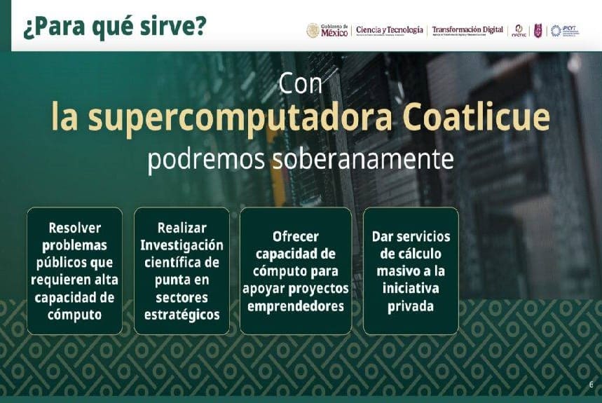 He reported that the six billion peso Coatlicue supercomputer project will allow estimating the amount of surface and deep water, processing data on climate, agriculture, energy, mobility or telecommunications.