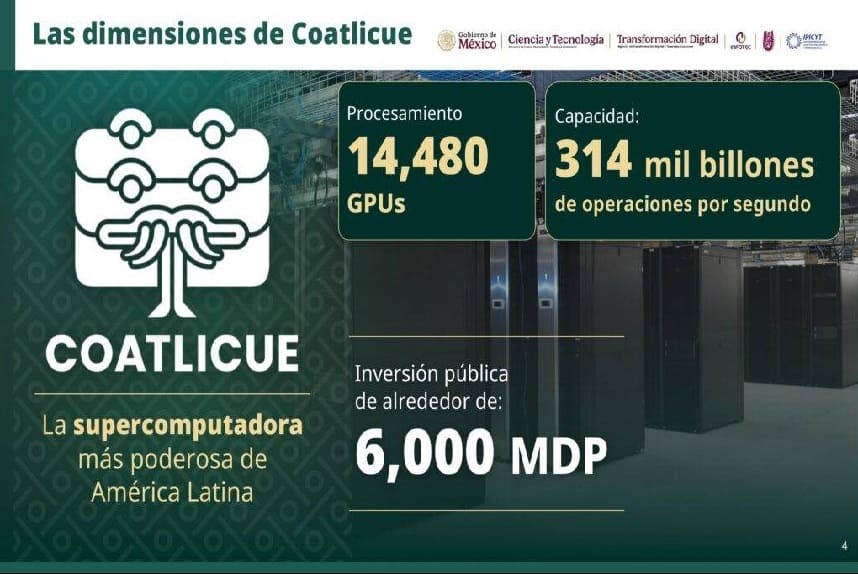 Sheinbaum said that higher education institutions, as well as the Center for Research and Innovation in Information and Communication Technologies (Infotec) and the Potosino Institute of Scientific and Technological Research (Ipicyt), are participating in the Coatlicue project.