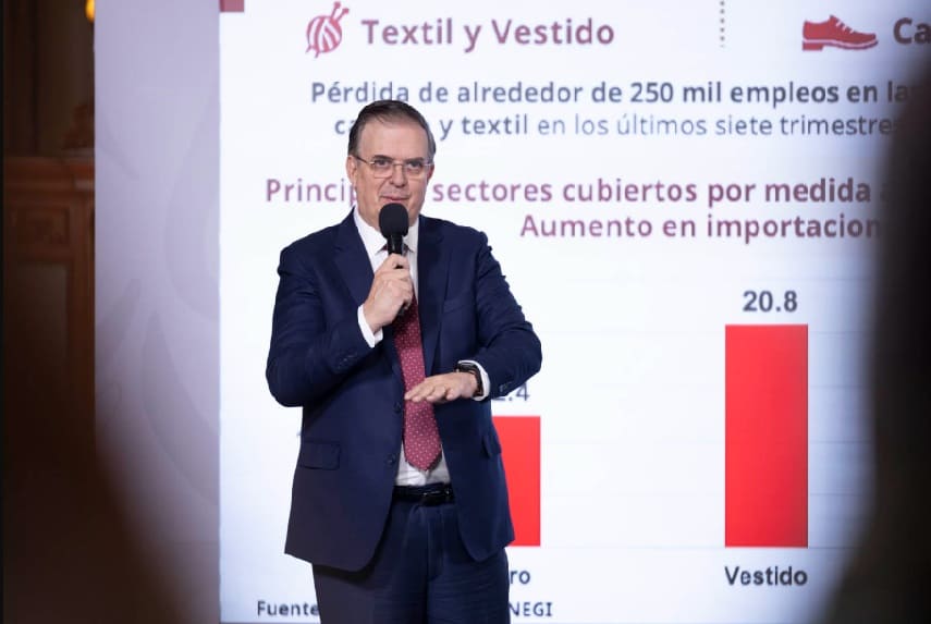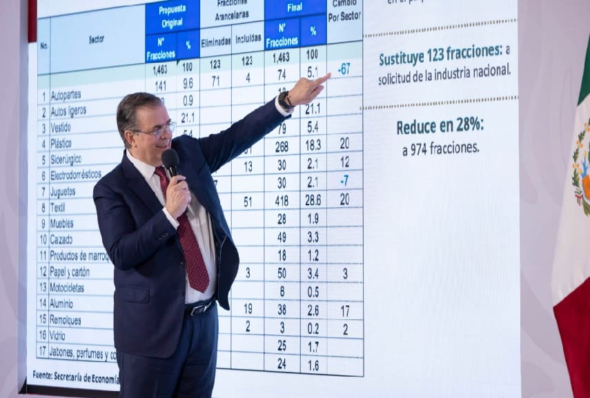 Mexico’s Secretary of Economy, Marcelo Ebrard Casaubon, explained that the Tariff Package aims to protect 350,000 jobs in Mexico and remedy the disadvantage in various industries with respect to foreign products in sectors such as automotive, textile, footwear and clothing.