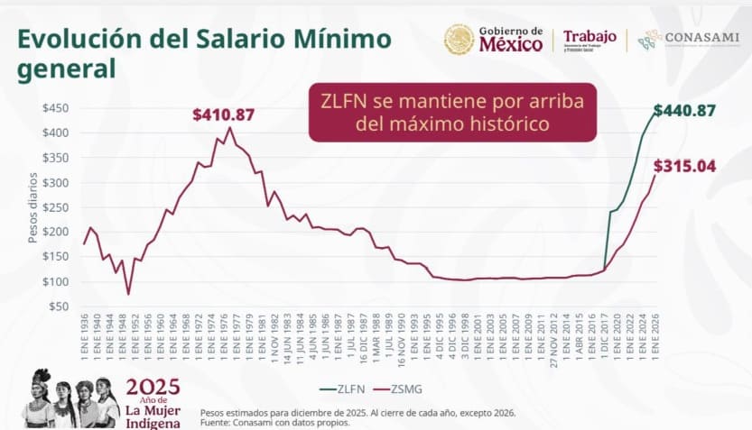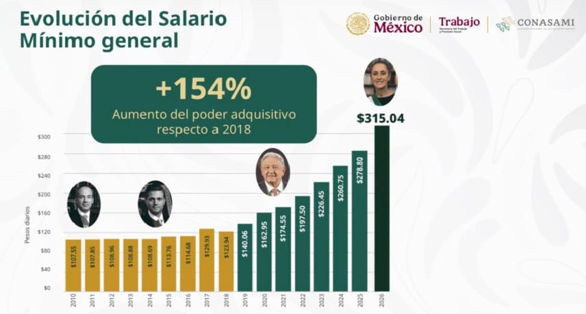 Marath Baruch Bolaños López, the Secretary of Labor and Social Welfare, explained that the purchasing power of Mexican workers has increased by 154 percent under the government, while on the border, it remains above the historical maximum, which means that access to basic food will increase from 1.8 in 2025 to 2.0 in 2026 and on the border to 2.8.