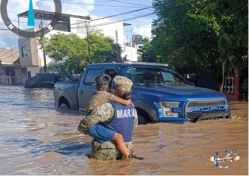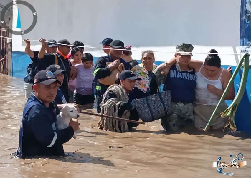 The Secretariat of the Navy reports that following the humanitarian actions deployed in areas affected by the rain, naval personnel have intensified assistance efforts to benefit the population in the affected municipalities.