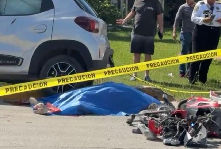 Cancun, Q.R. — Cancun Transit were part of the emergency response team to an accident on Huayacán Avenue late Monday morning. A collision between a car and motorcycle left one driver dead.