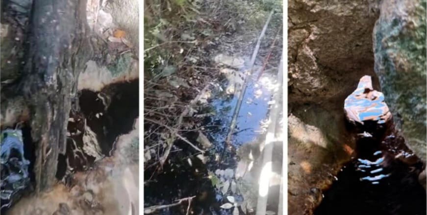 On Tuesday, residents posted photos of a dark, oily liquid seeping from a hole under the cement plant’s perimeter wall. The drainage hole in the bottom of the concrete wall allowed the black discharge to leave the site and enter nearby jungle.