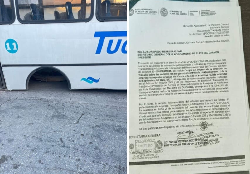 Playa del Carmen, Q.R. — The company that owns a bus that lost its rear axle while transporting passengers is being investigated. The City of Playa del Carmen is looking into why company Transportes Urbanos del Carmen (Tucsa) failed to make the repairs to faults found during its last inspection.