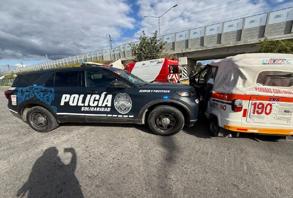 The incident happened at the intersection of Azulejos and Sur avenues in Villas del Sol when a Playa del Carmen police vehicle hit a city mototaxi.