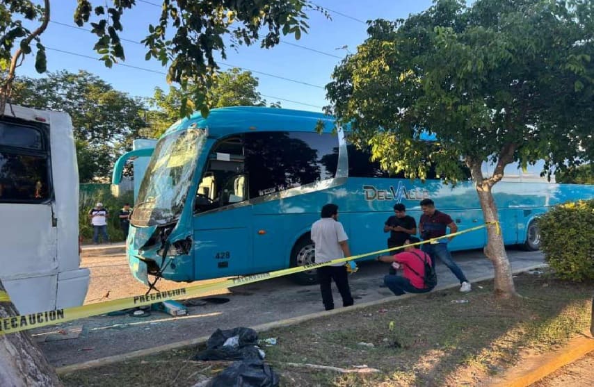 Puerto Aventuras, Q.R. — A rear end collision between two buses left one driver dead in Puerto Aventuras Sunday. The SSC (Secretariat of Citizen Security) reported the accident off Calzada Avenue when one bus rear-ended another.