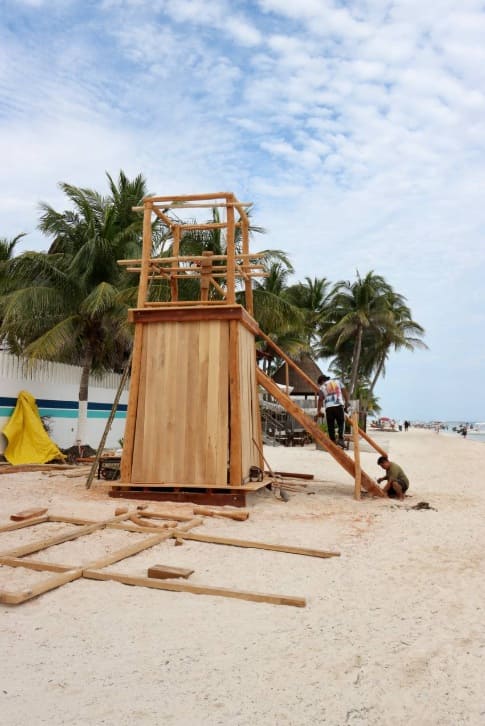 That project will include a base of treated zapote wood, an elevated guardhouse, safety railings, a four-sided roof with vegetation, access stairs, non-slip floors and perimeter benches, all with comprehensive treatment against humidity and insects.