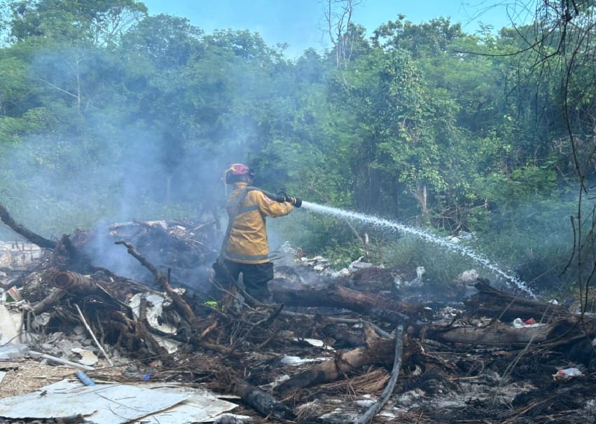 Playa del Carmen, Q.R. — Playa del Carmen firefighters put out a blaze found burning in a wooded area Sunday. Firemen were sent to a property adjacent to CTM Avenue Sunday morning in response to resident reports of smoke.