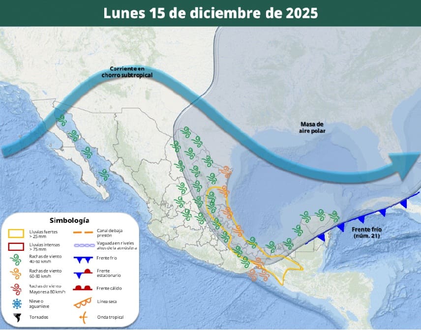 The SMN reports that on Sunday, a new approaching cold front, number 21, will make its way toward the peninsula.
