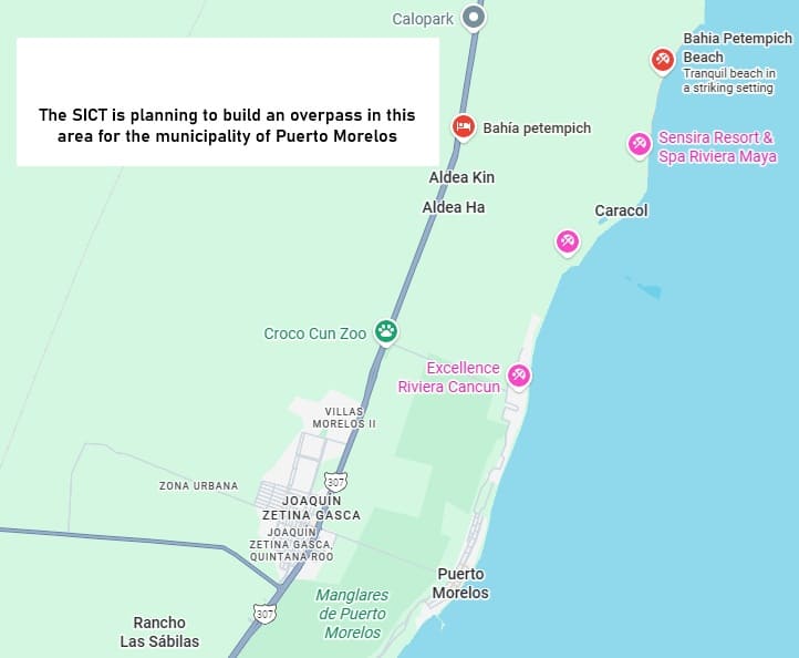 Puerto Morelos, Q.R. — The Ministry of Infrastructure, Communications and Transportation (SICT) has presented its plans for an overpass. The overpass project is set for construction along the federal 307 north of the town of Puerto Morelos.