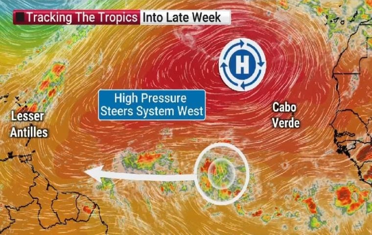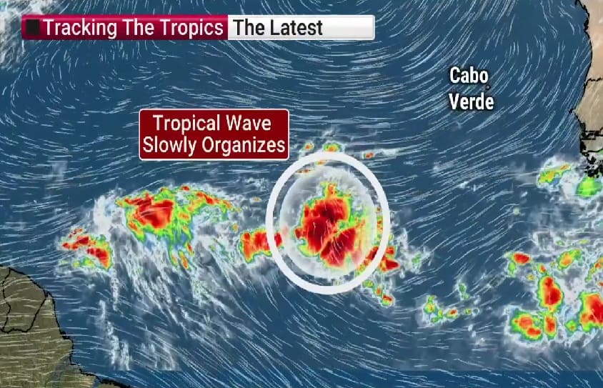 “A tropical wave located over the tropical central Atlantic is expected to move westward at 15 to 20 mph during the next several days. Some slow development of this system is possible when it reaches the central portion of the Caribbean Sea by the middle part of next week,” reported NOAA (National Oceanic and Atmospheric Administration) forecaster Cangialosi.