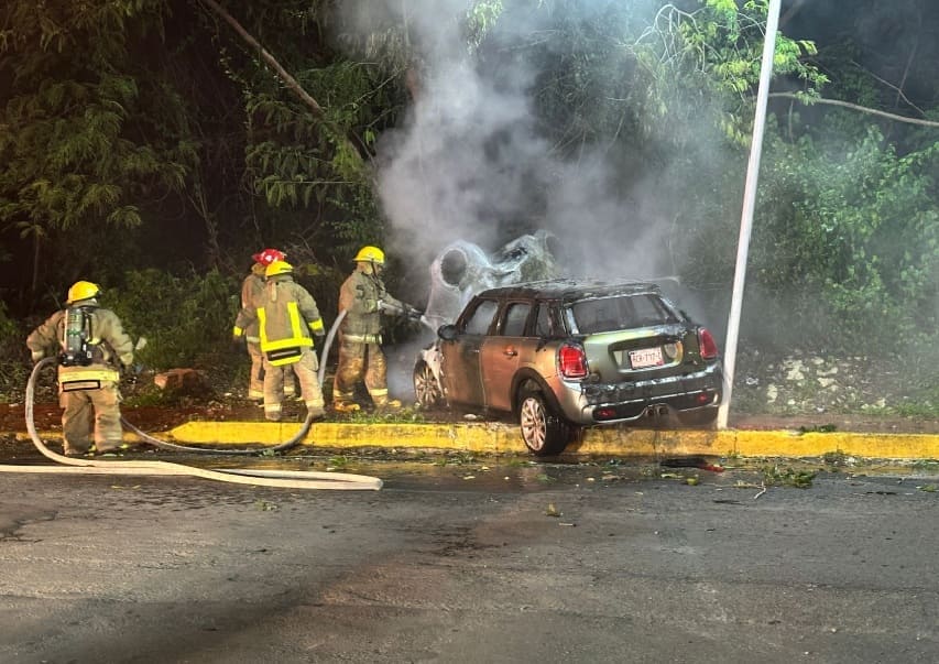 Chetumal firemen were first on the scene in response to reports of the burning car. The accident happened near the intersection of Pucté Avenue and Universidad Avenue where the driver was taken into custody.