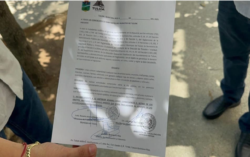 Orozco Zavala said personal visits were paid to the problem areas Tuesday where police invited people to voluntarily remove the items blocking public passage. She said the Traffic Regulations of the Municipality of Tulum and other municipal and state regulations prohibit the misuse of public roads and empower authorities to guarantee free transit and urban safety.