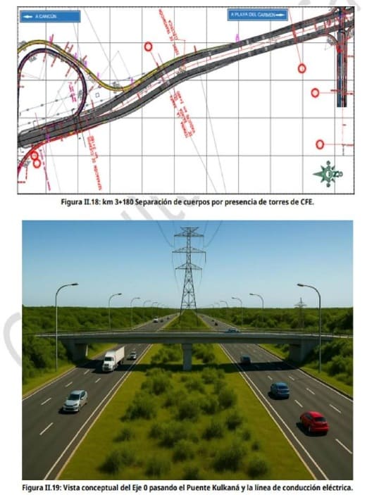 “The main works include a 1,160-meter viaduct over the Maya Train line, the 1,200-meter Huayacán Bridge, vehicular overpasses, at-grade and grade-separated interchanges, as well as stormwater drainage works.