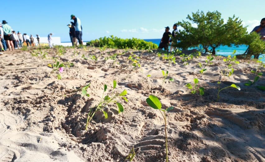 Cancun, Q.R. — Shrubs have been planted on the coastal dune of the Playa Delfines Protected Natural Area. The sand thriving shrubs were planted Saturday as part of the city’s reforestation program.